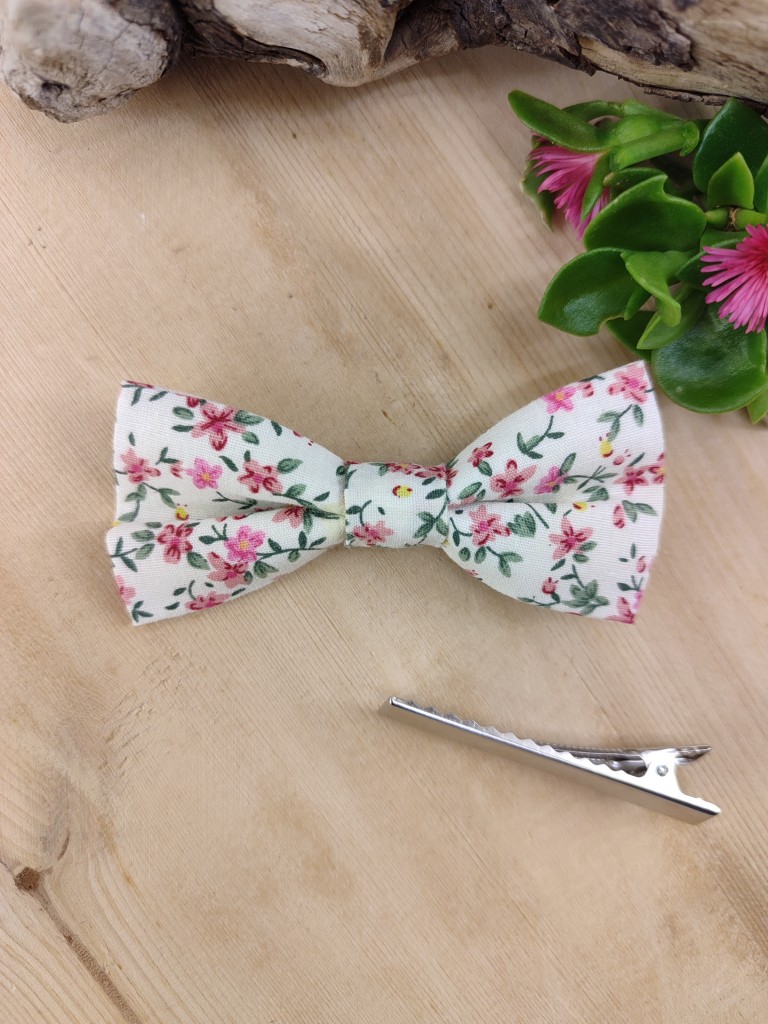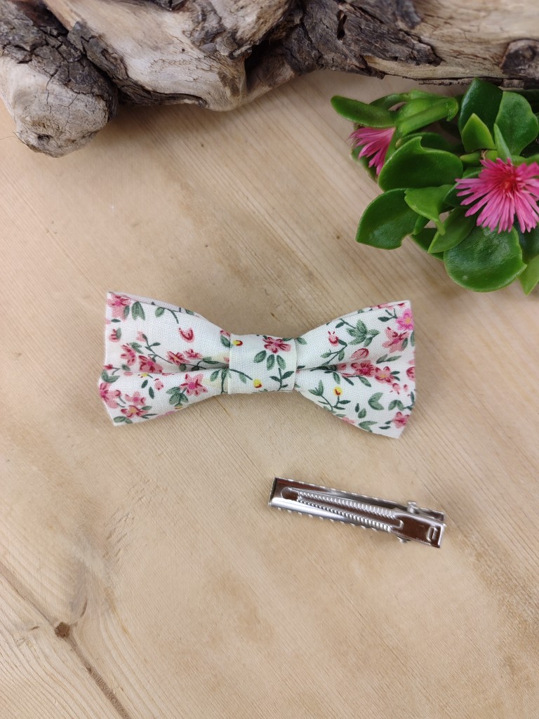 Noeud papillon monté sur une pince crocodile, offrant une bonne prise et un maintien sécurisé sur tous types de cheveux.