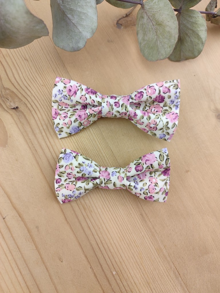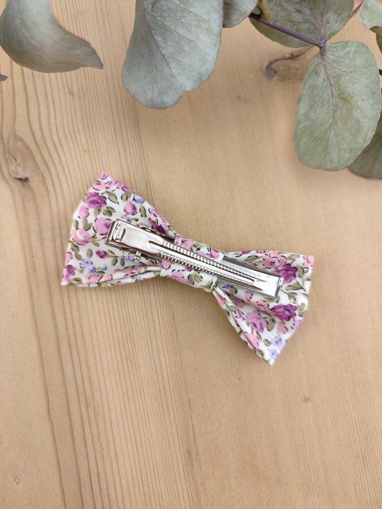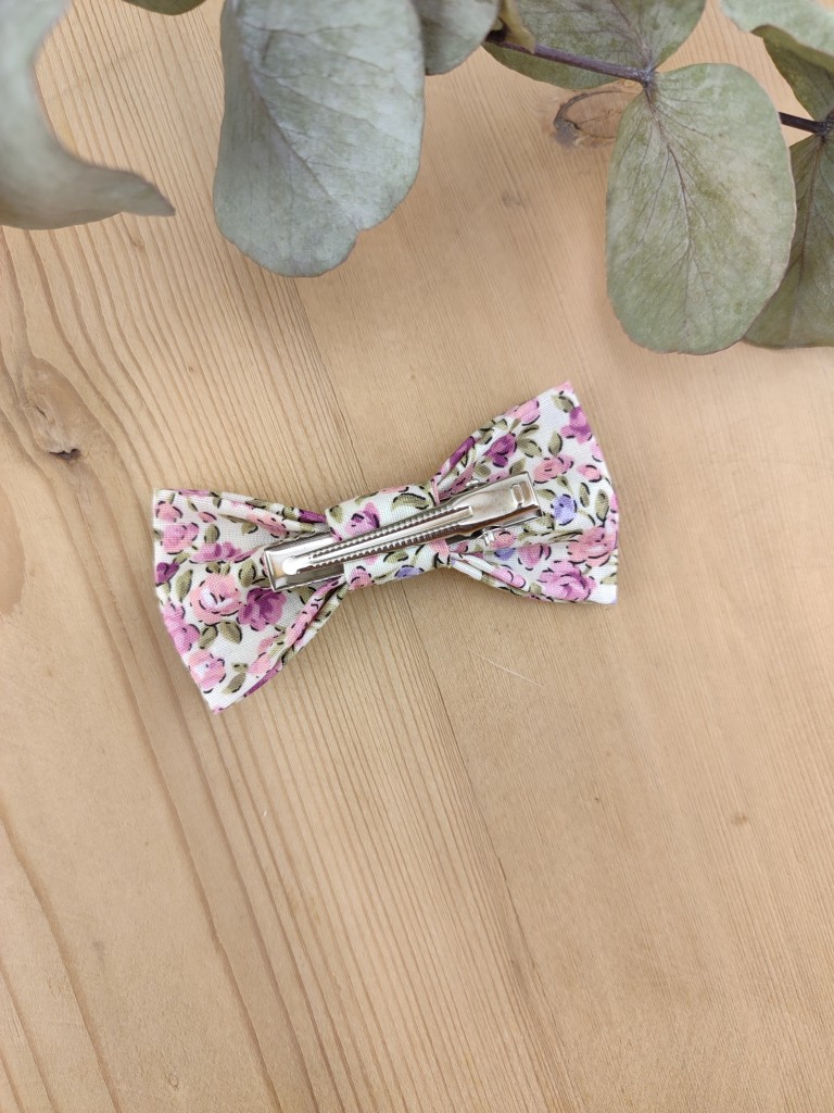 Ajoutez une touche de poésie aux coiffures de vos enfants avec notre barrette nœud papillon en tissu floral rose. Pensée pour les moments de complicité au grand air, cette création artisanale transforme chaque coiffure en un instant de douceur.