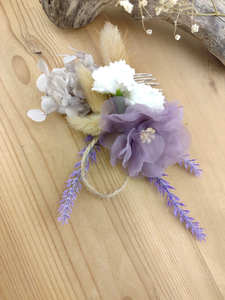 Organza, fleurs séchées et synthétiquesDestinataire :