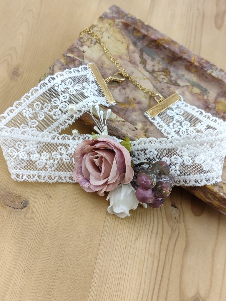 Ce collier dentelle Ederton® est une création élégante et poétique, entièrement réalisée à la main dans mon atelier de Donzère, en Drôme Provençale.