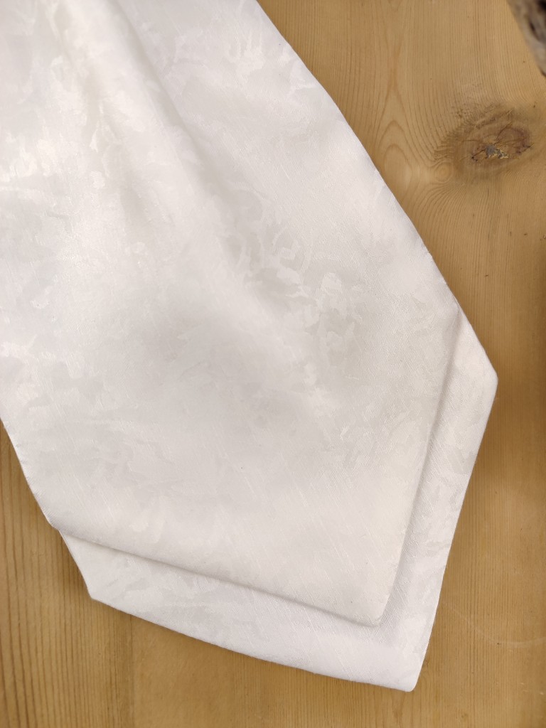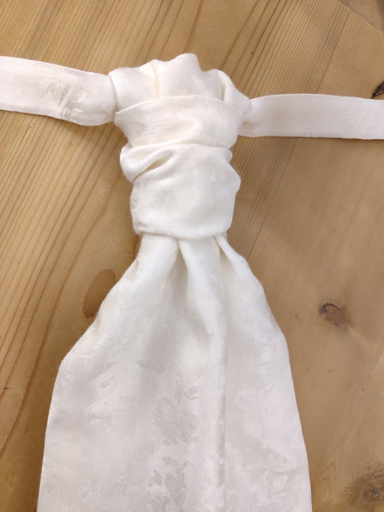 Lavallière pré-nouée en tissu façonné ivoire, pensée pour une allure élégante et structurée sans contrainte de nouage.