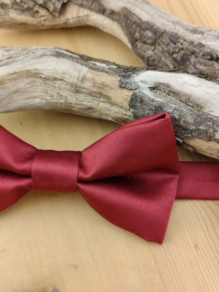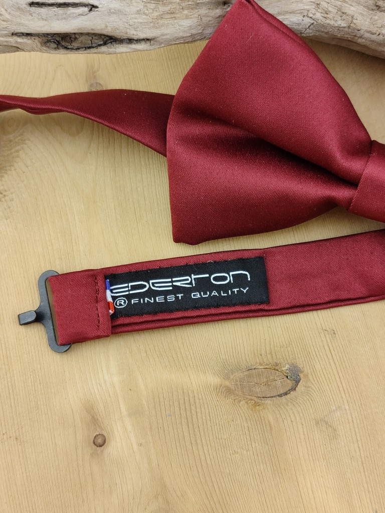 Apportez une touche d’élégance intemporelle à votre tenue avec ce nœud papillon en satin Duchesse bordeaux.