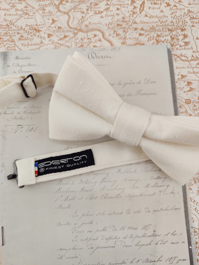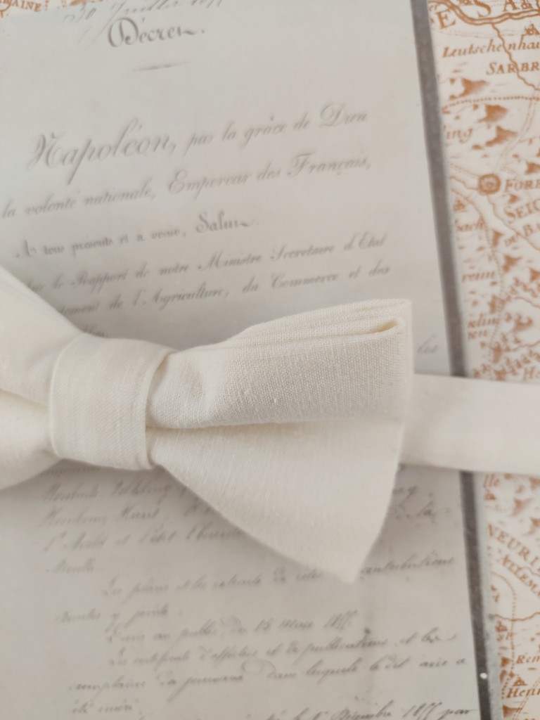 Ce nœud papillon ivoire double-nœud se distingue par son volume structuré et son allure affirmée.
