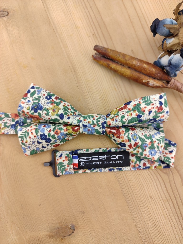 Nœud papillon fleuri bleue, terracotta et vert