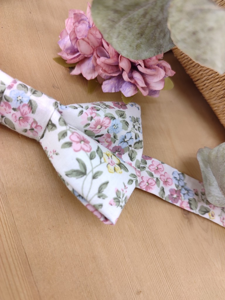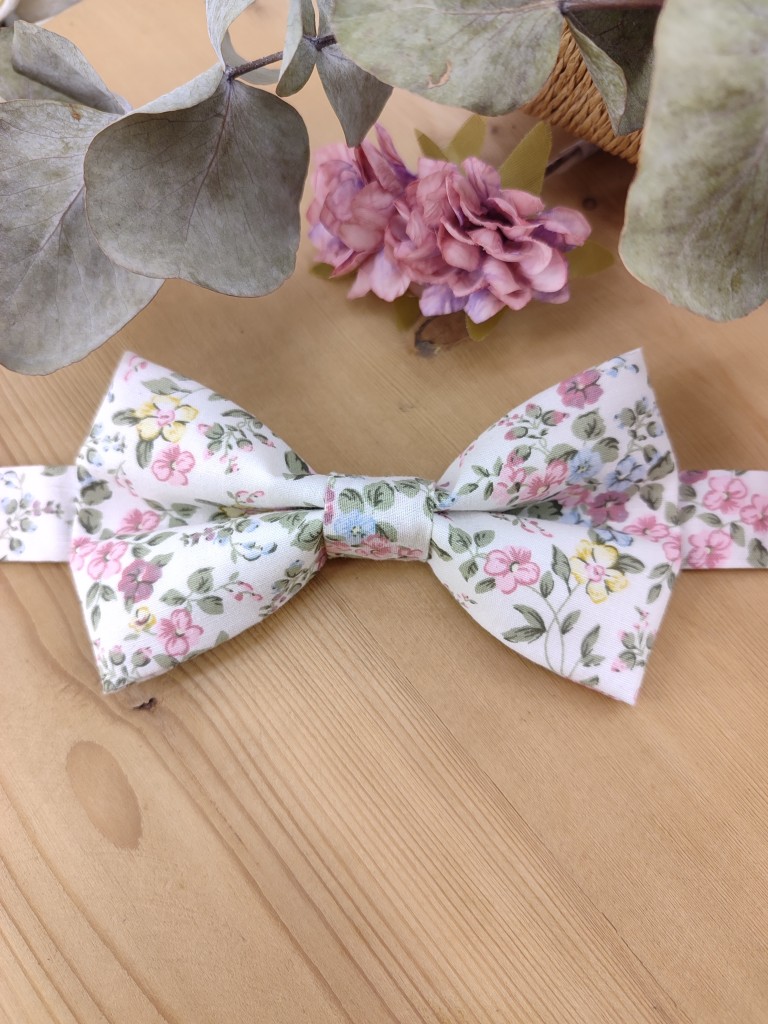 Nœud papillon Liberty dans les tons roses et sauge
