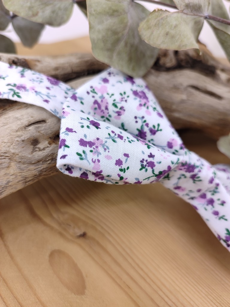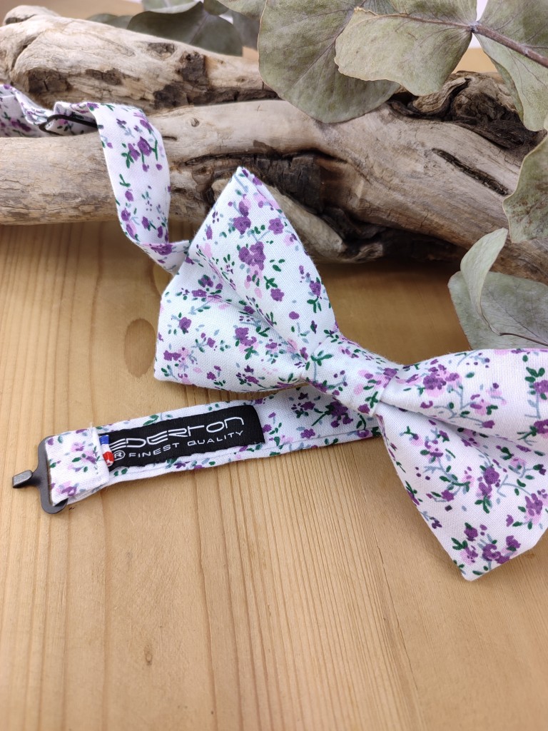 Ce nœud papillon pour homme est réalisé en tissu Liberty fleuri violet, choisi pour sa finesse et son élégance naturelle.