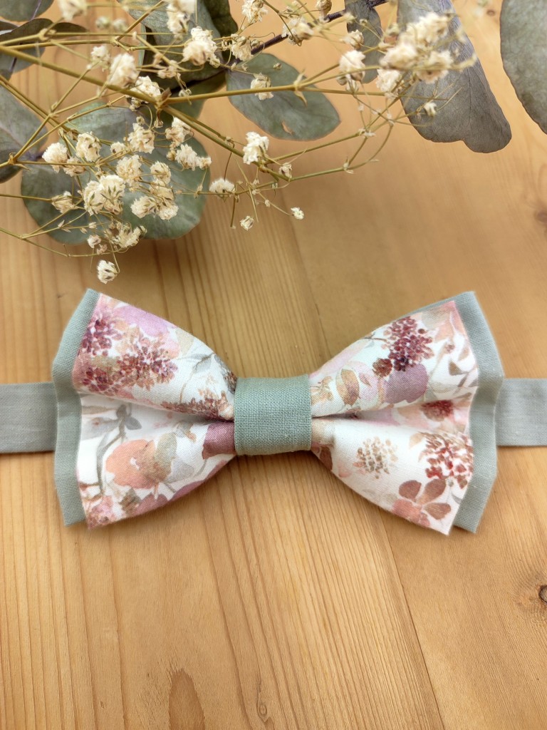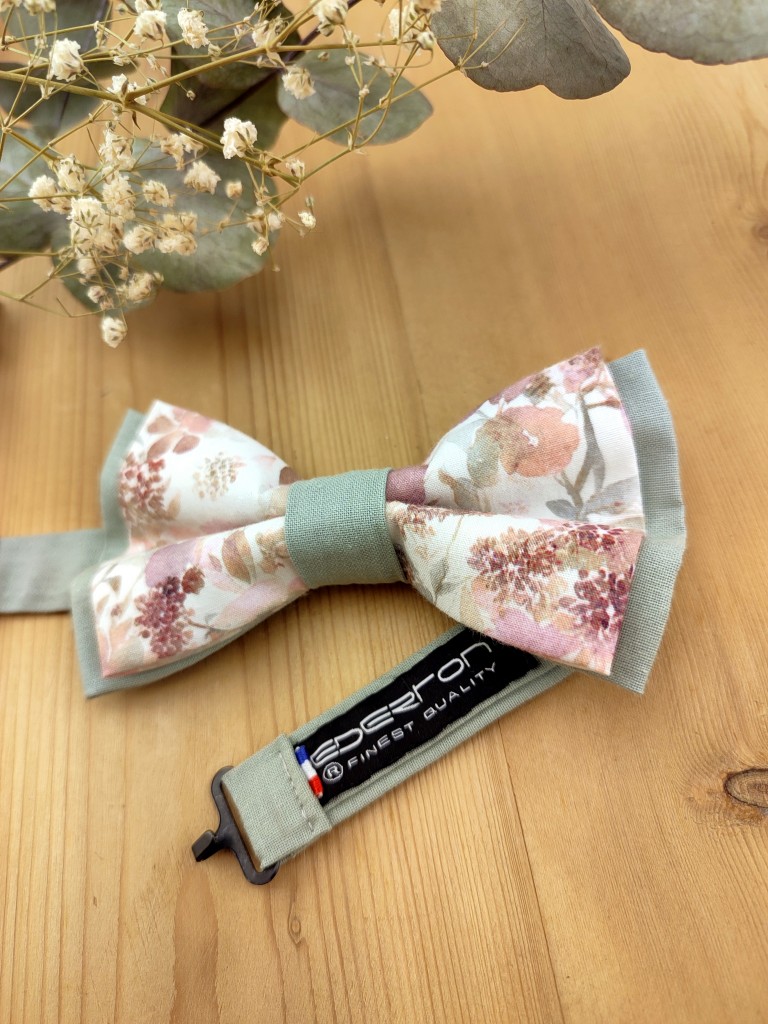 Découvrez l’élégance raffinée du nœud papillon double Ederton®, composé d’un sous-nœud vert sauge uni et d’un nœud supérieur fleuri rose poudré, rehaussé de délicates touches de sauge et de pêche. Une création subtile et harmonieuse, idéale pour un mariage, une cérémonie, un shooting photo ou un cadeau soigné.