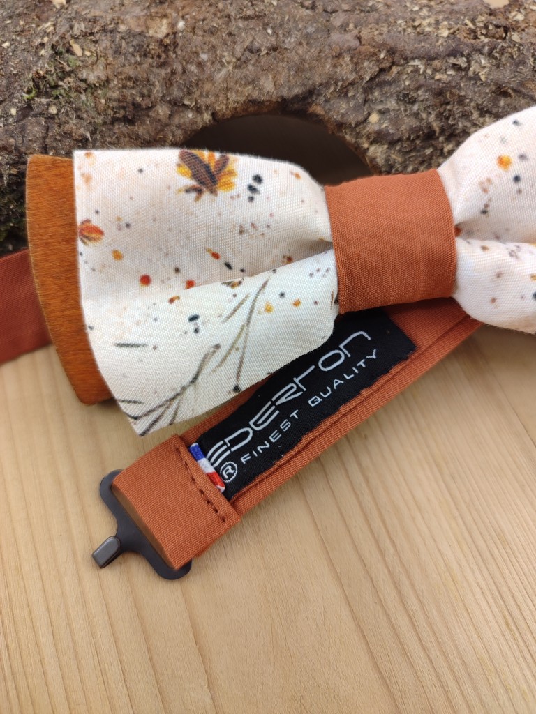 L'élégance prend une nouvelle dimension avec ce nœud papillon hybride. En associant la noblesse du bois véritable à la délicatesse de notre tissu aux motifs "fleurs sauvages", Ederton crée une pièce de caractère.