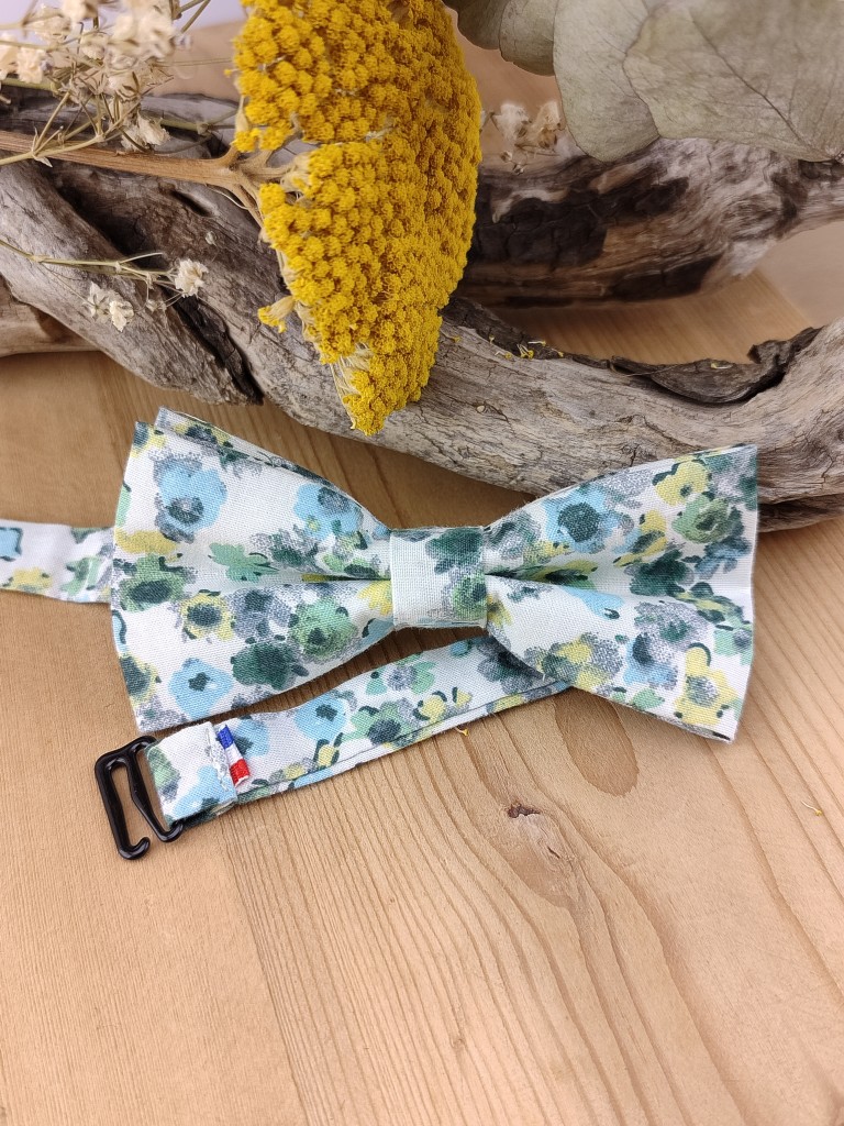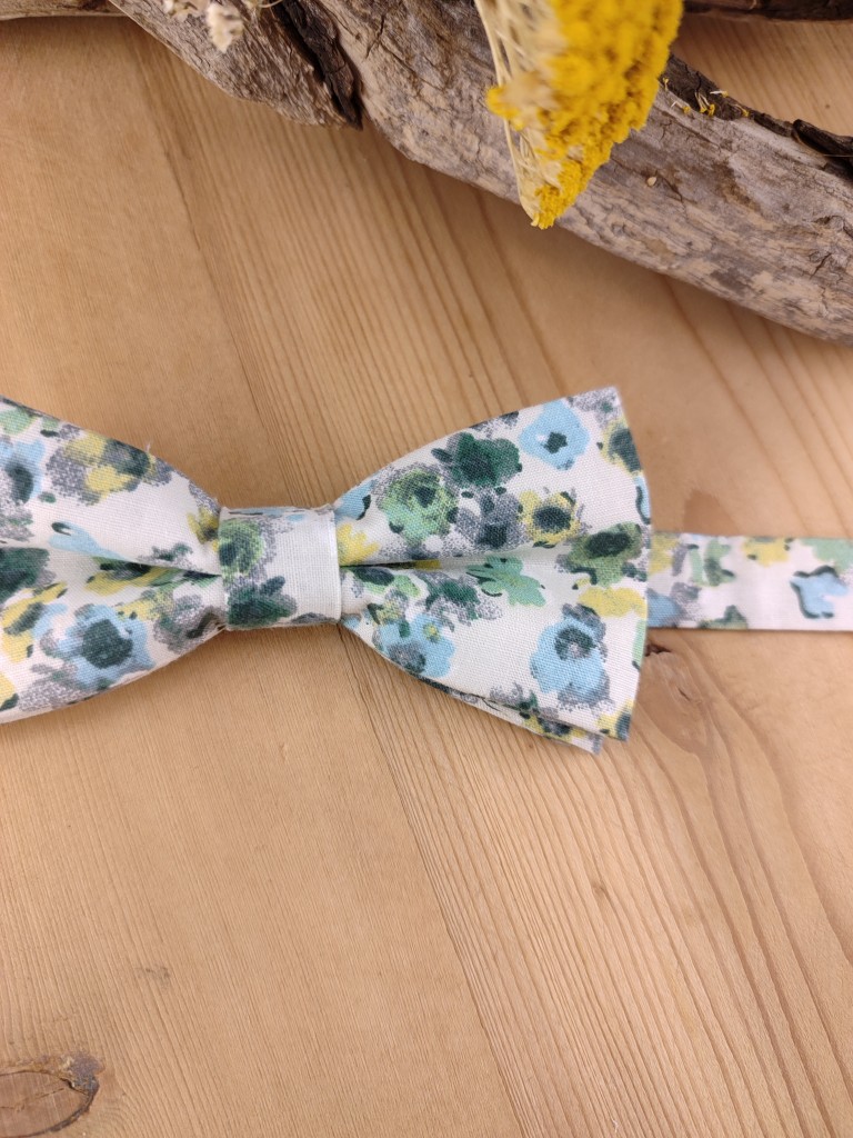 Ce nœud papillon enfant en coton floral vert est une création pleine de charme, spécialement pensée pour les jeunes garçons lors des cérémonies ou événements élégants.