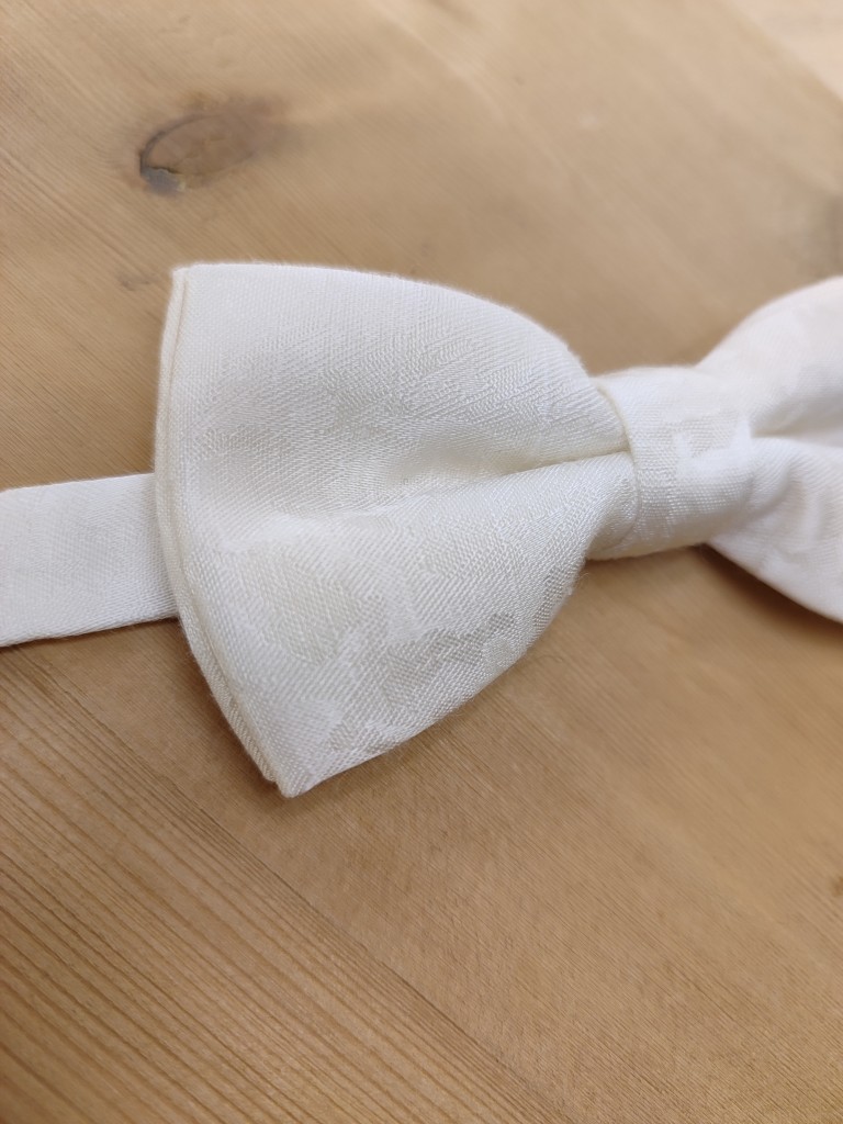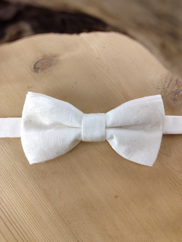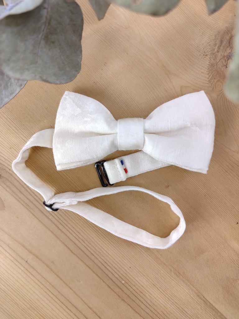 Nœud papillon enfant en tissu façonné ivoire, conçu pour les cérémonies et événements habillés.