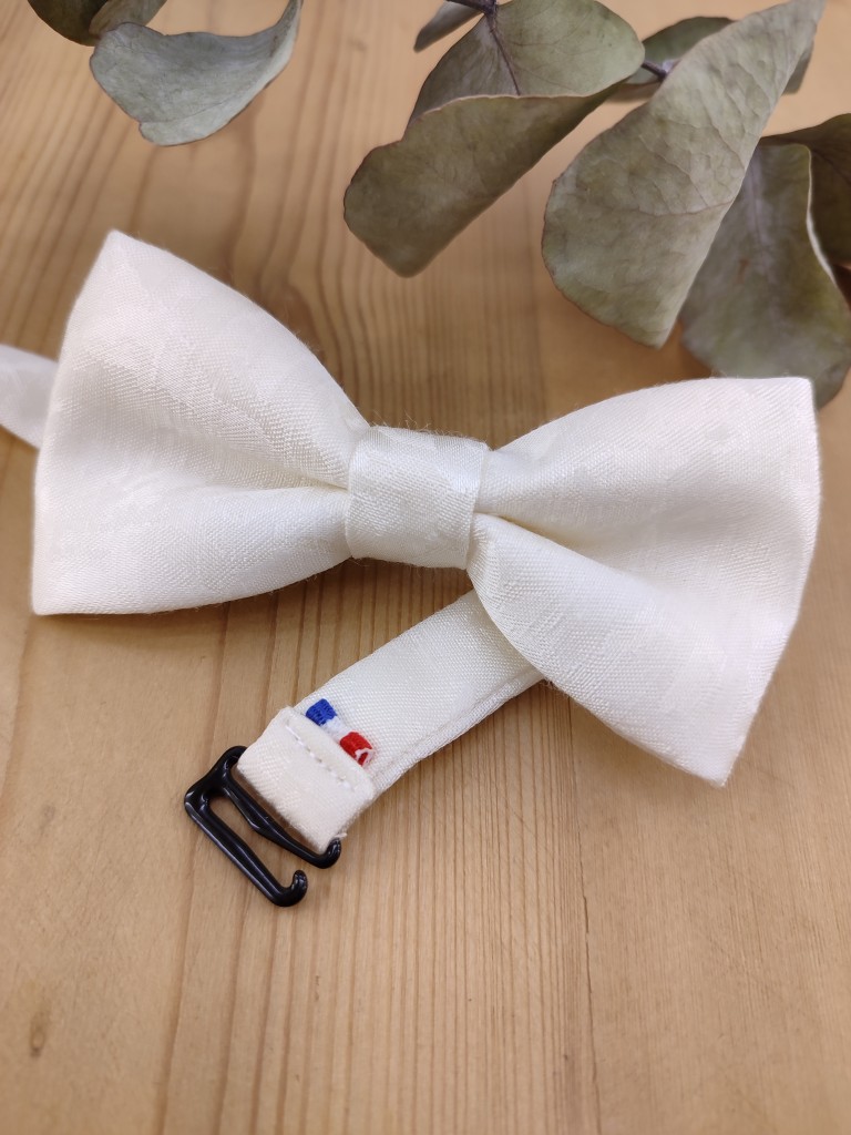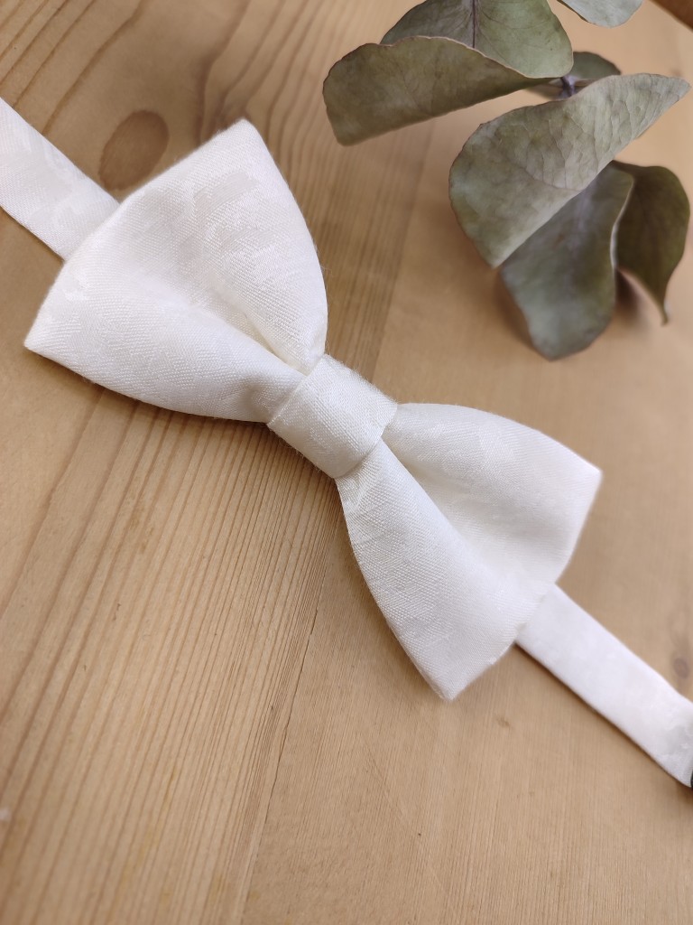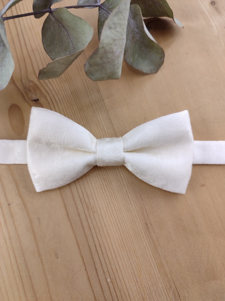 Nœud papillon enfant en tissu façonné ivoire, conçu pour les cérémonies et événements habillés.