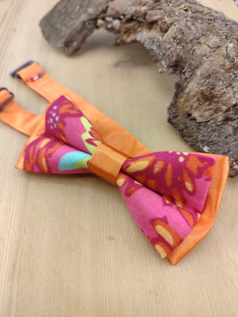 Noeud papillon Liberty fleuri orange et fuchsia pour enfant