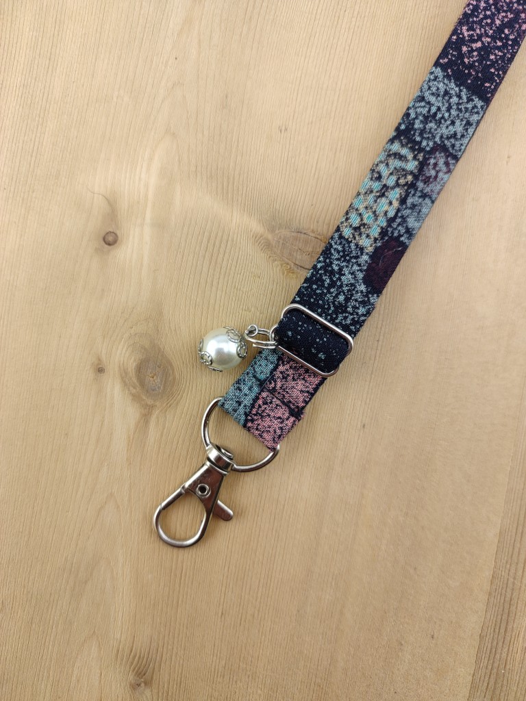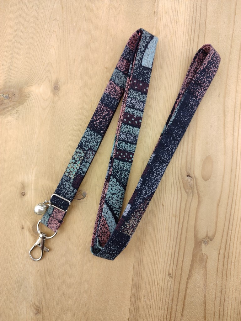 Réalisé à la main dans l’atelier Ederton, à Donzère, il se distingue par ses teintes harmonieuses — noir, vieux rose, vert et gris — et ses détails soignés : une perle décorative et une attache mousqueton argentée.